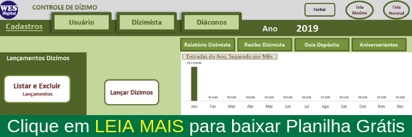Clique Aqui e Baixe Grátis Planilha Controle de Dízimo e Oferta Excel